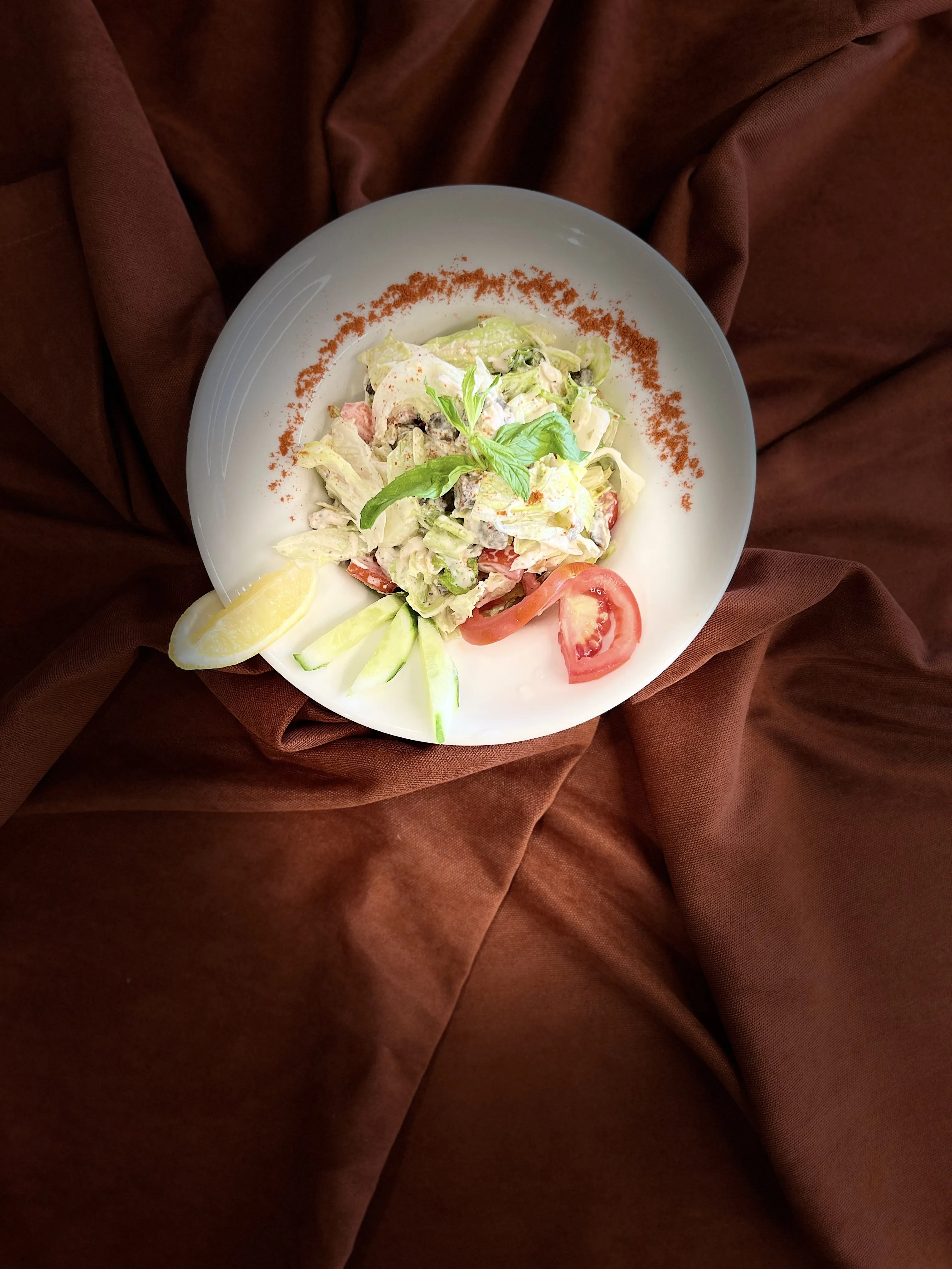 Tiftik tavuk, ceviz ve özel bir sosun harika birleşimini içeren enfes bir salata.