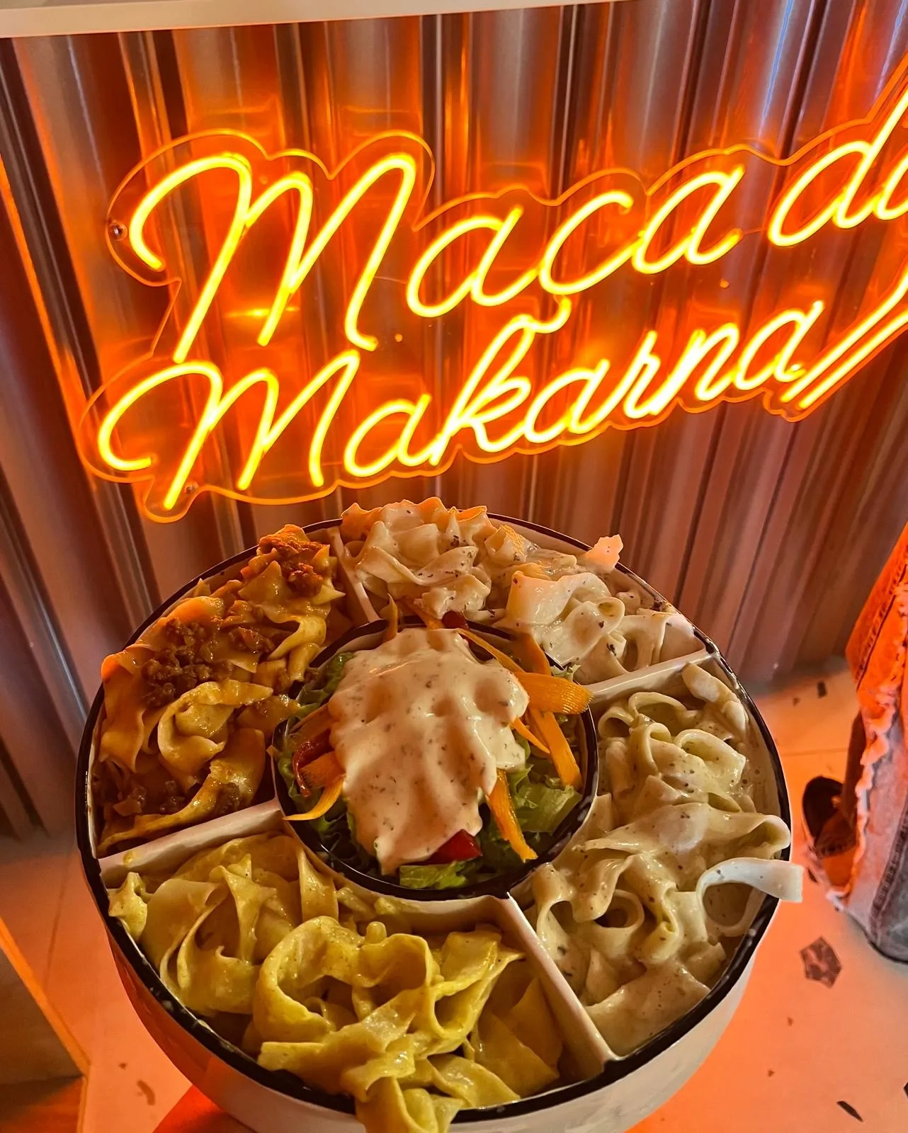 İstediğiniz 3 çesit makarna ve o günün özel makarnasının salata ile sunumu.